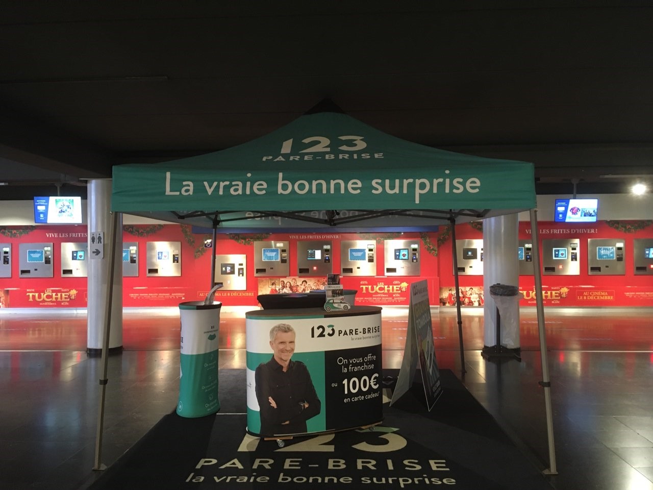 Pour vous garantir une visibilité encore plus forte, n’hésitez pas à coupler votre opération à une campagne d’affichage ou à l’utilisation d’écrans positionnés à des emplacements stratégiques du parcours spectateur.